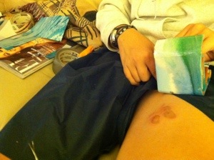 We did not take into account that the instructions on the box were for treating callused warts on the tough skin of the feet or hands, rather than fresh flesh we applied it to. We went a little overboard. We may (probably) have given ourselves some serious burns. I can say the pain of the sizzling skin was really nothing compared to the ache of the burn setting in during the hours that followed. And then the burns swelled with that yellowish healing fluid until it looked like we were lepers. Good news is it gave us a great opportunity to work on our crafts!