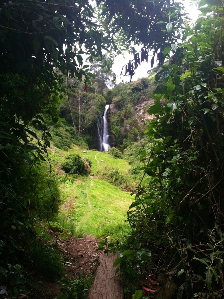So we decided to stop by the beautiful Cascada la Paluz waterfall 3km outside the city of San Gabriel (which was surprisingly adorable) on the way to the border. We had vague directions from the guidebook I had been studying, and we assumed that once we got on the right road it would simply be a matter of following the path. Not so much. Turns out you can take any road, according to the locals, and yet not all of the various diverging paths lead to the same spot. So H lead us into another pathless, flower-filled field and we rolled down the steep hill together. We even greeted the woman doing laundry who watched us stumble down through her fields! But in the end we followed the groups of livestock (pigs that lead to sheep which in turn put us in contact with the cows who really seemed to know the way) and just sat and marveled at the natural beauty.