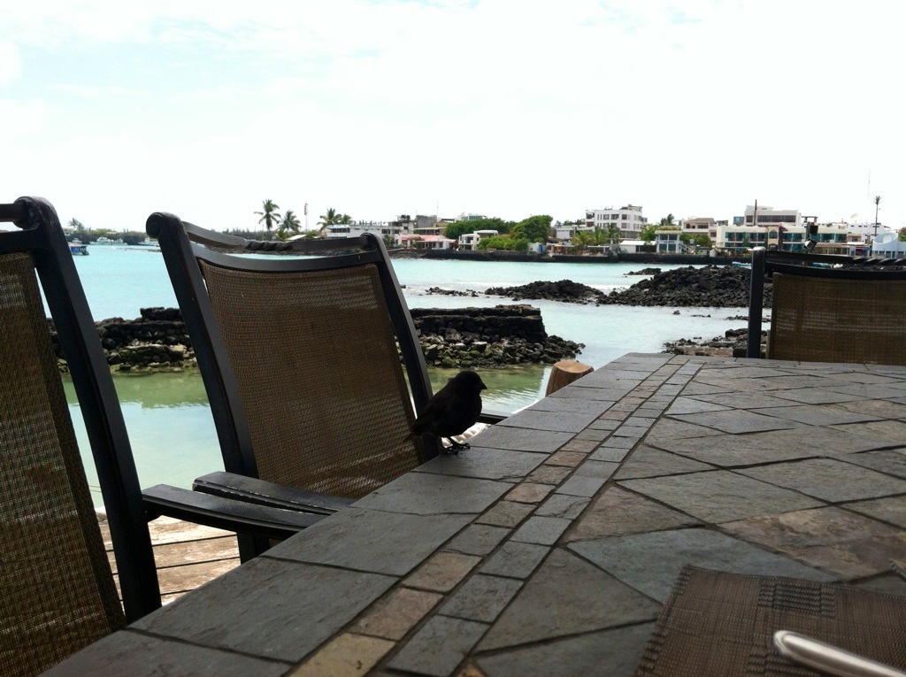 Our guide arrived exactly on time in the morning for our transport to the Galapagos (which I am told is quite an event since Ecuadorians are usually late). Our morning consisted breakfast then transit from one end of Ecuador to the other with a 2nd breakfast then onto the islands with an early 11zs via a plane then to another island via a boat then over to the other side of the island via a coach to our Red Mangrove Lodge all before 11:30am. We explored the lodge for the rest of the morning and watched marine iguanas swim in and out to sea, brown pelicans bathing themselves, sea lions sleep under the deck, frigate birds cruise the wind currents, and examined the finches’ bills as they came to our table to display.