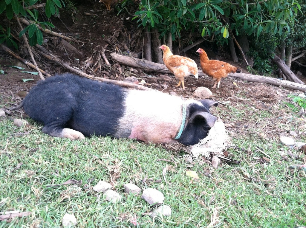 We woke up each morning next to a rushing river, birds chirping, and these strange pink bananas tempting us to pick them.