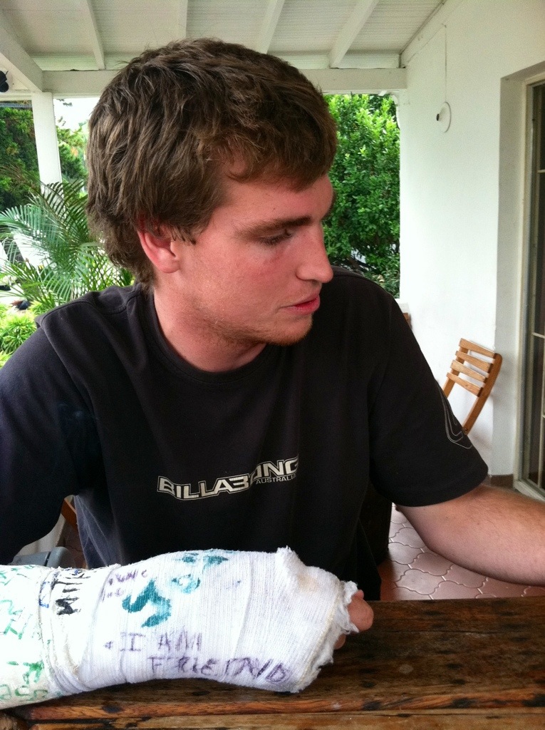 Yep, that’s a nose cut from being head-butted and a classy Panamanian hat. In fact this kiwi and his travel buddy have largely been our entertainment after their full-night-into-day benders, and sometimes taking us along on their adventures at night (until we slink home at an embarrassingly early hour, like 4am). Let’s visit a recent morning conversation: